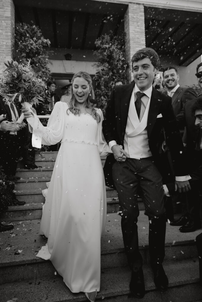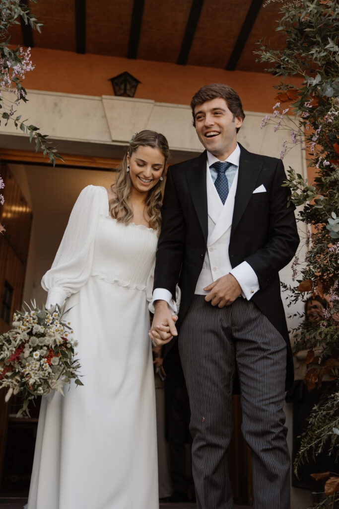 La salida de la ceremonia como marido y mujer: Todavía estábamos asimilando todo lo que acababa de pasar. Cuando salimos y vimos a todos nuestros amigos y familiares esperándonos con tanta ilusión, sentimos un subidón de alegría enorme.