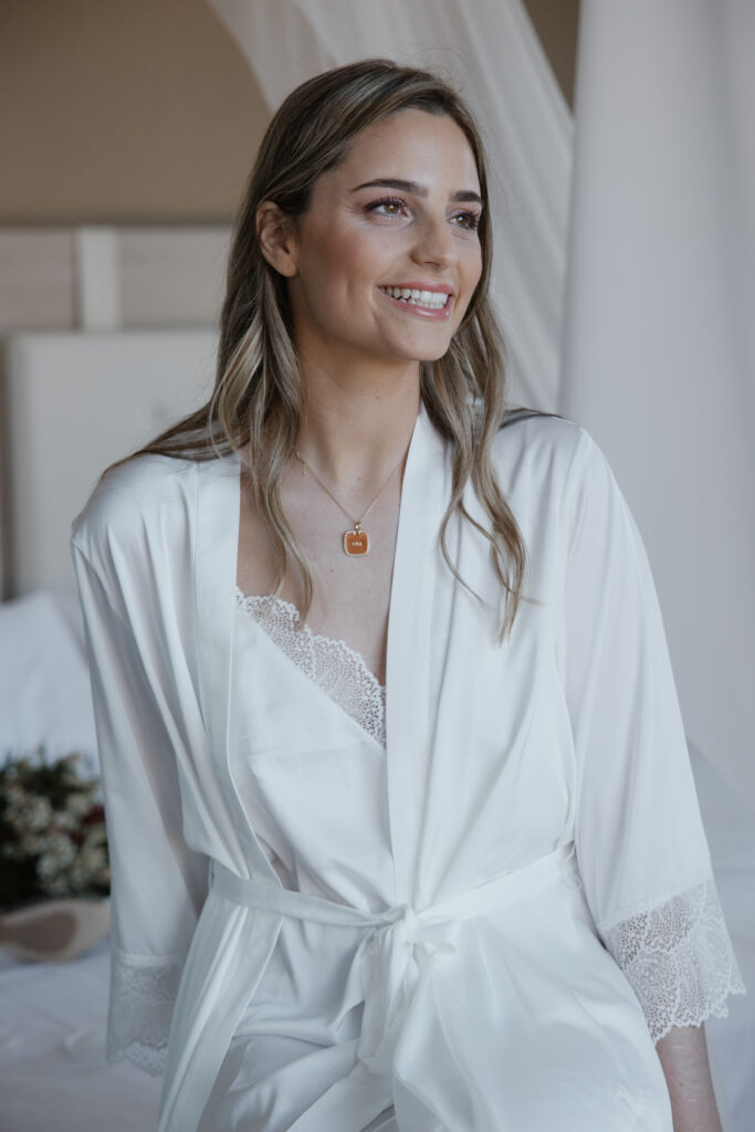 ¿Qué detalles tuvisteis con vuestros invitados? Preparamos unas acuarelas para todos los que nos hicieron despedida y, para las niñas, hice unos pendientes especiales. Además, quisimos entregar pequeños ramos a ocho personas muy importantes en nuestras vidas, como un gesto simbólico de cariño. Para todos, montamos una mesa de aceites personalizados de Olivamente que podían llevarse a casa, y que además quedó espectacular como parte de la decoración.